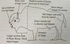 Wood Buffalo sketch reveals differences with Plains Buffalo. Courtesy van Zyll de Jong et al. NPS.
